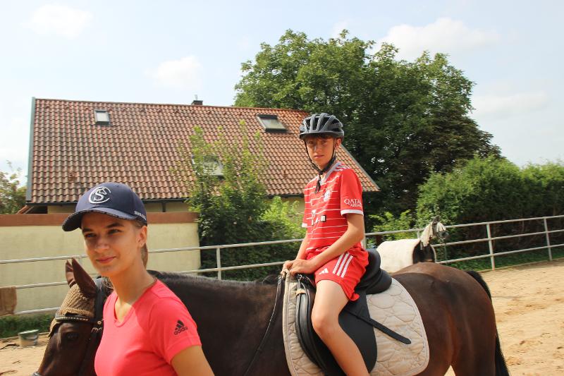 Ihr besucht einen kleinen, familiären landwirtschaftlichen Betrieb, der Pensionspferde beherbergt und eine eigene Reitschule führt. Der Hof ist tier-, umwelt- und naturfreundlich ausgerichtet. Für die Anreise wird ein privater PKW verwendet.