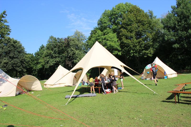 Ihr werdet in gemütlichen Tipis übernachten, welche jeweils für sechs bis zehn Teilnehmende Platz haben. Zudem gibt es einen großen Gemeinschaftsraum, einen Holzpavillon und eine riesige Feuerstelle. Moderne Sanitäranlagen findet ihr unweit von euren Zelten.