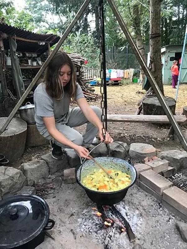 Bei eurer Vollverpflegung könnt ihr tatkräftig mithelfen. Wir kochen gemeinsam an der Feuerstelle und beteiligen uns alle beim Schnippeln, Rühren, Braten und natürlich auch beim Probieren.