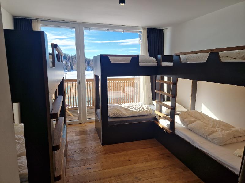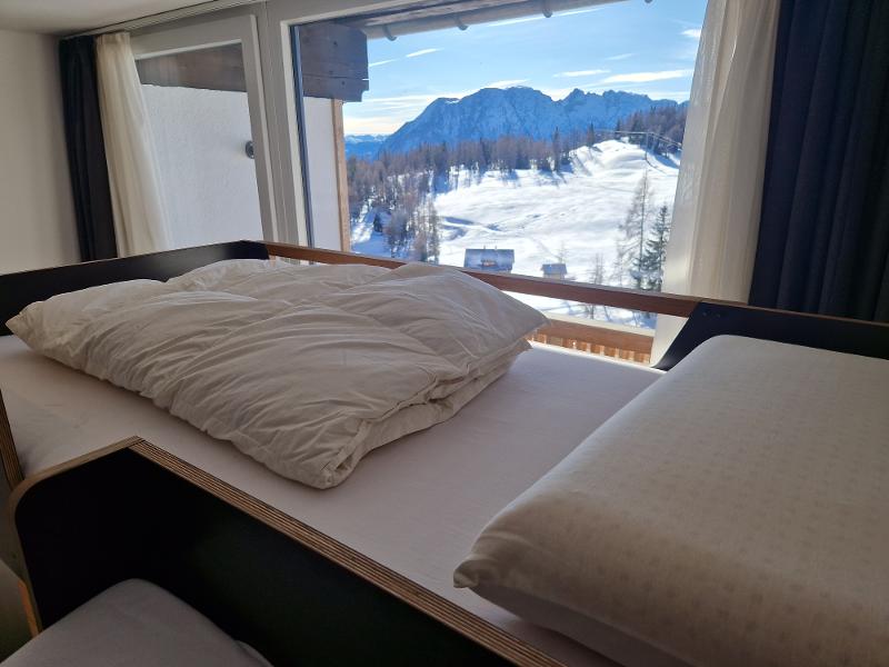 Das Haus bietet 180 Betten in gemütlichen, modernen Zimmern mit Dusche/WC, teils mit Balkon. Wenn ihr mit euren Freunden auf ein Zimmer kommen möchtet, gebt das gerne in das Anmerkungsfeld bei Buchungsabschluss an. Außerdem gibt es in dem Haus vier Speisesäle, ein Panorama-Hallenbad und eine Zirbenholz-Sauna. Die Nutzung der Einrichtungen ist für euch natürlich kostenlos.